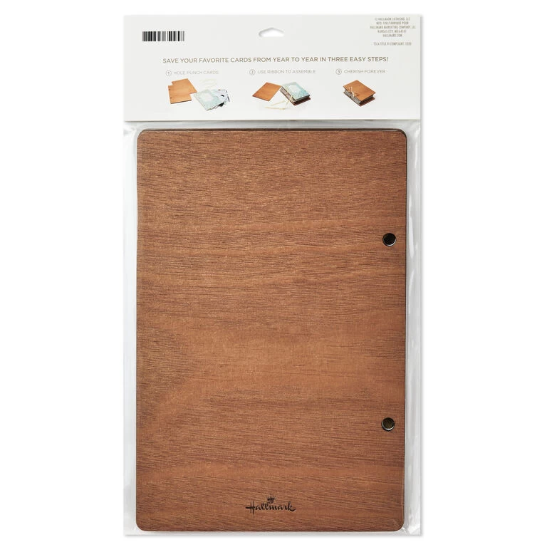 - Includes 2 decorative wood panels for front and back cover, grosgrain ribbon and paper template to use as hole punch guide. (Hole punch not included.)