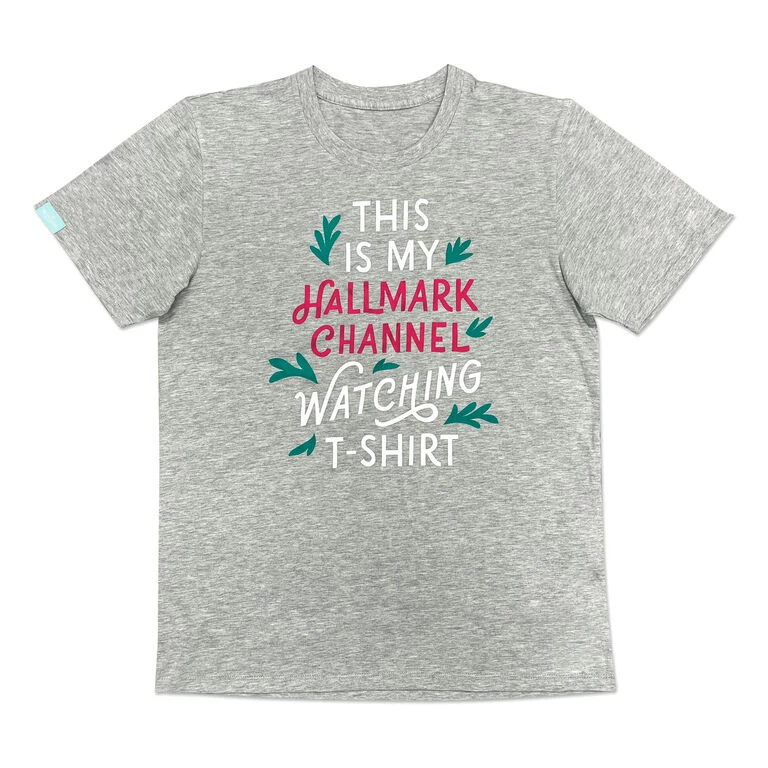 - Hallmark Channel unisex short-sleeve gray T-shirt features greenery designs and fun quote.