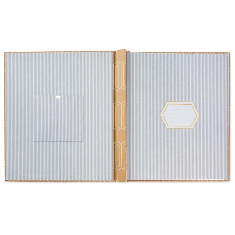 Collect photos and snapshots from vacations, special events and gatherings in this pretty photo album that features a geometric hexagonal design on kraft background. Customize the cover with your own favorite photo in the die-cut photo window, framed with gold foil. With 8 magnetic photo pages, this photo album lets you add refill pages as needed. Refill packs sold separately.