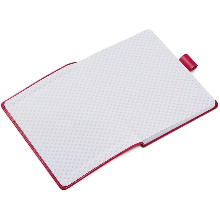 America’s sweetest mouse brings her cheerful presence to the faux leather cover of this journal, a fun way to jot down your best ideas and to-dos. Inside cover features pink polka dots on white paper, of course. Contains 160 lined pages inside, as well as a loop for storing a pen or pencil.