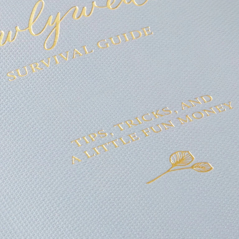 - “Newlyweds Survival Guide” gift book features tips and tricks for new couples with slots to insert related gift cards.