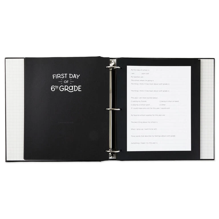 • Hardcover three-ring binder memory book features a cover design of fun, chalk-style white lettering on black.
